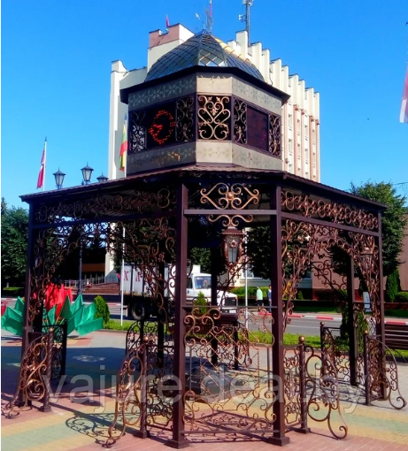 Ротонда кованая, с уличными часами и куполом покрытым по технологии шашка. Шашка изготовлена из нержавейки покрытой нитрид титаном. Высота - 7 метров. Внутри ротонды расположен земной шар, символизирующий дружбу народов. В арках установлены красивые фонари.